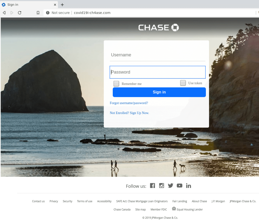 Figure 11: Screenshot of a phishing domain masquerading as a Chase Bank login page.