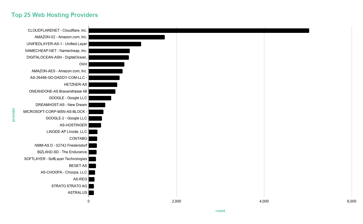 Figure 3: Top 25 hosting providers for COVID-19 themed domains in our dataset.