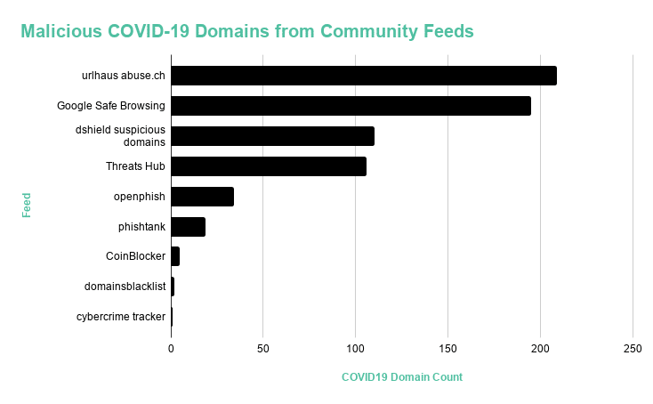 Figure 14: Chart with details about the community threat intelligence feeds we used to identify malicious domains.