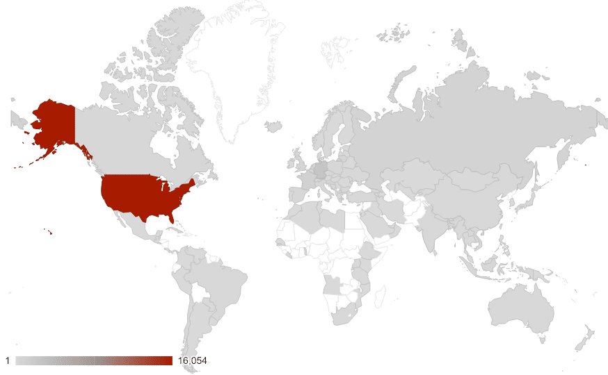 Figure 10: Heat map showing locations of servers hosting COVID-19 themed content.