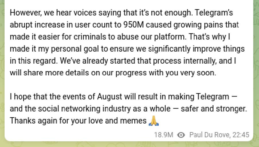 Pavel Durov’s Telegram “crackdown”