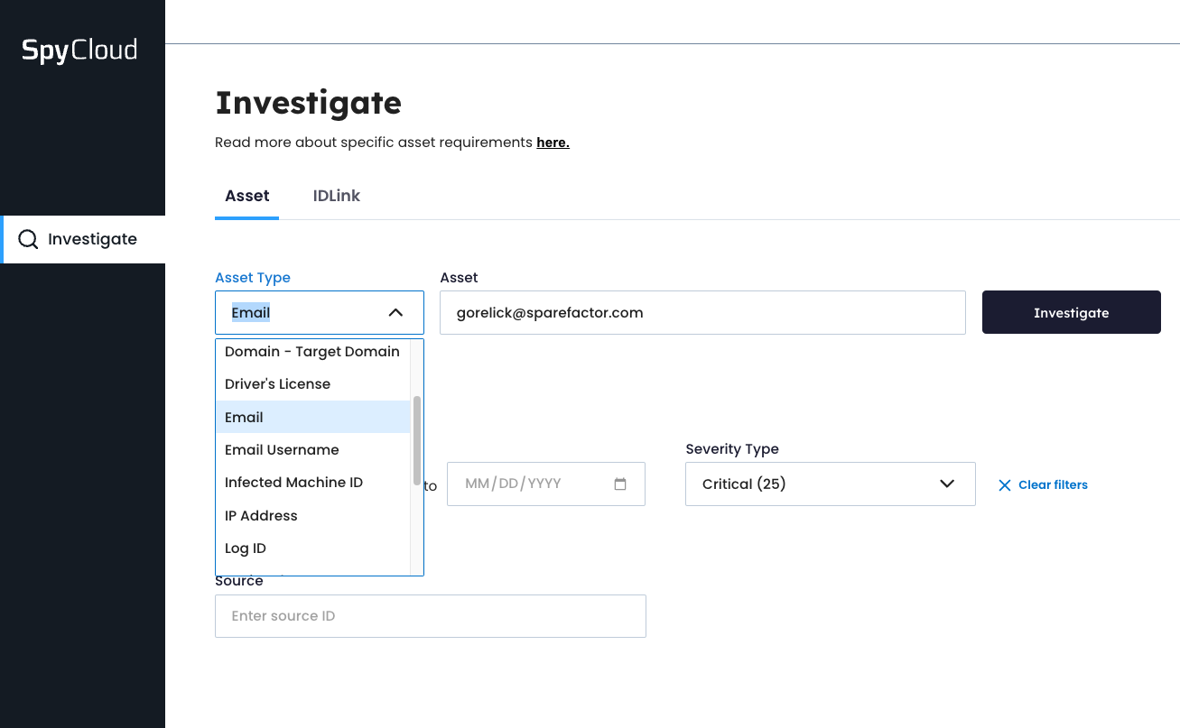 - SpyCloud Investigations with IDLink only returns new, highly-relevant results, removing any out-of-scope identity asset that slows down analysis.