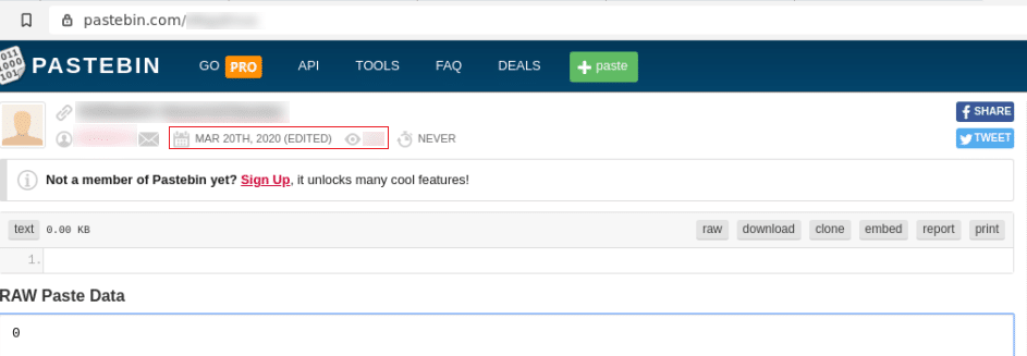 Figure 3: Screenshot of the developer’s pastebin paste, showing the date it was last edited.