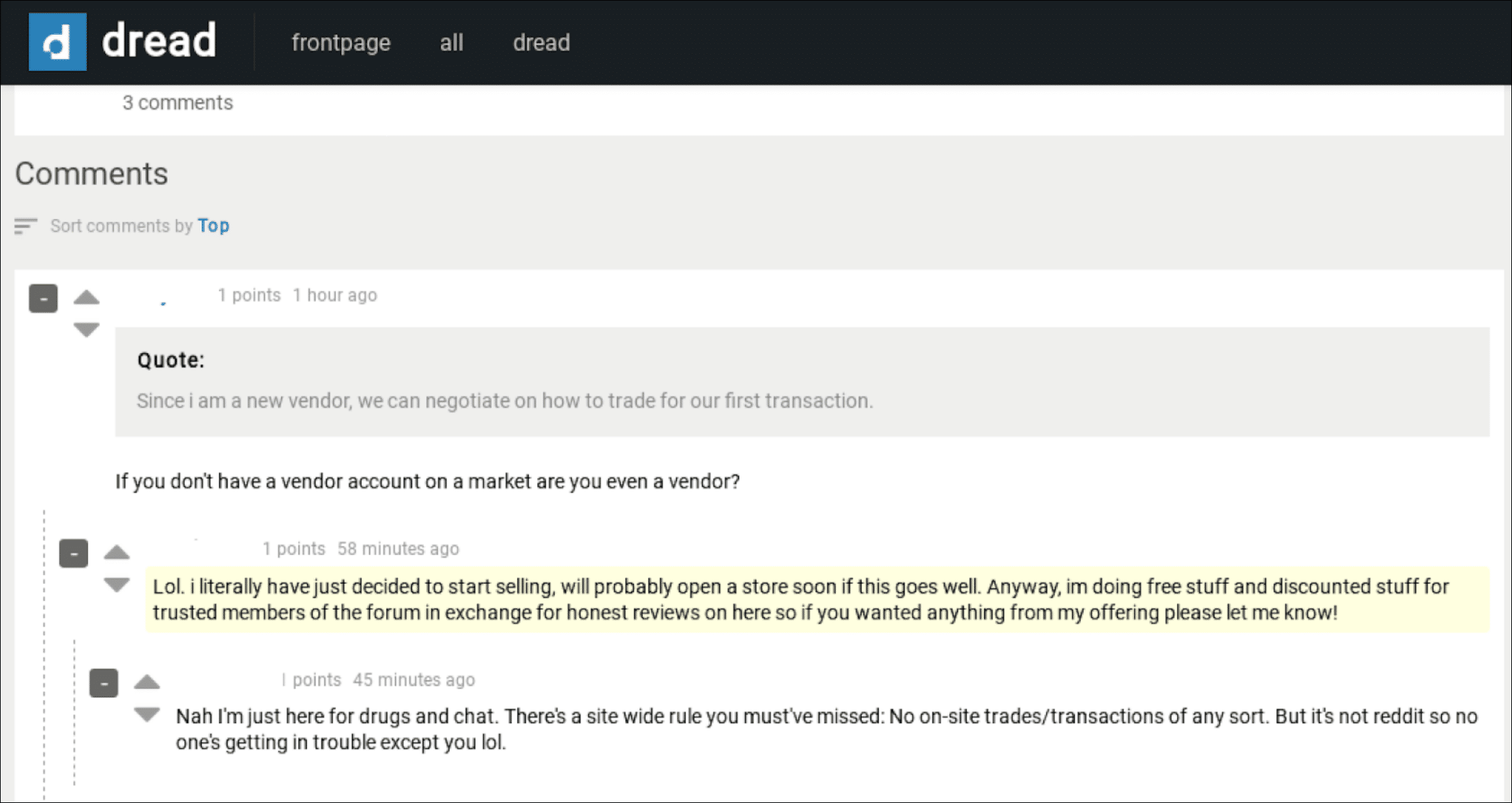 Figure 1: Screenshot of the dark net: “Dread” forum