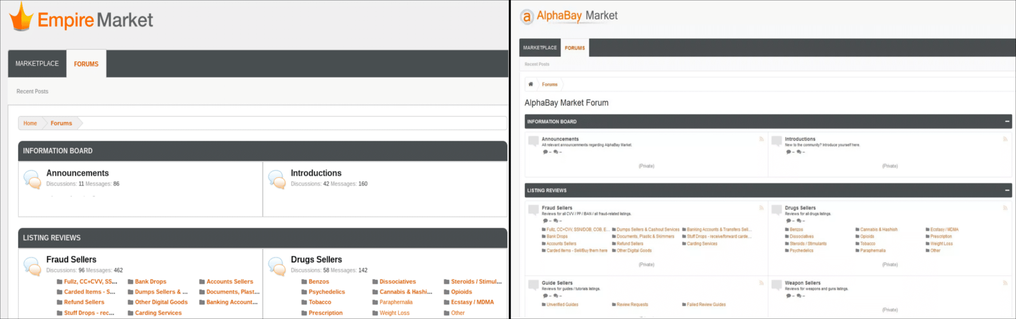 Figure 2: Side-by-side of Empire Market and its predecessor, AlphaBay