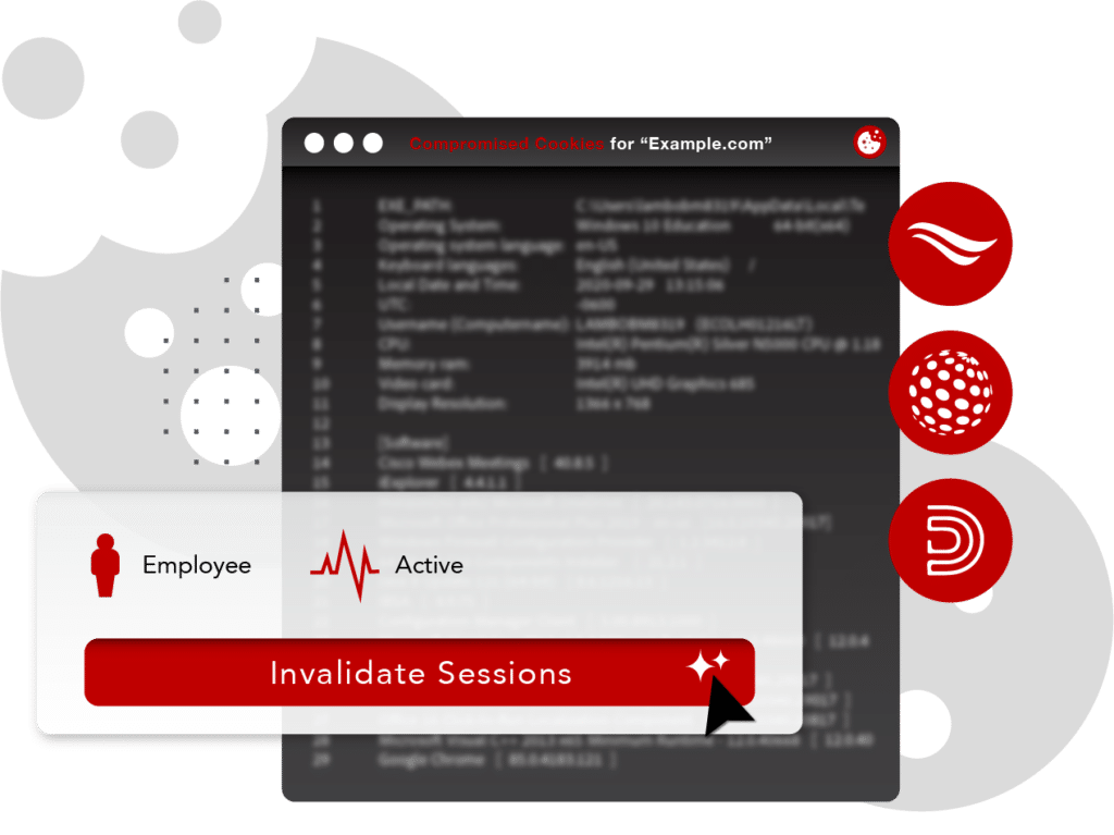 With SpyCloud’s Session Identity Protection for enterprises, security teams can detect when your employees’ authentication cookies are stolen by malware and intervene to prevent session hijacking and MFA bypass.