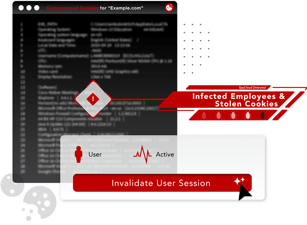 Uncover threats to your organization like malware-infected employees, stolen session cookies, and recency of breach exposures